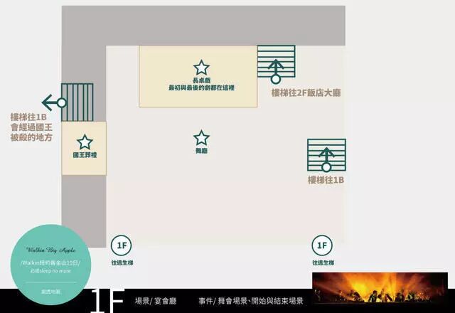 After entering the game, all the protagonists will dance in the 1F ballroom, especially the king dancing with Mrs. Macbeth, so Macbeth will burn in the 1.5F very bonfire. After the dance, everyone can keep up with the role they want to follow. The king and Mrs. Macbeth will leave together and go to the bar at 2F. Mrs. Macbeth swindles the king to drink a glass of wine, and the king immediately goes to sleep.