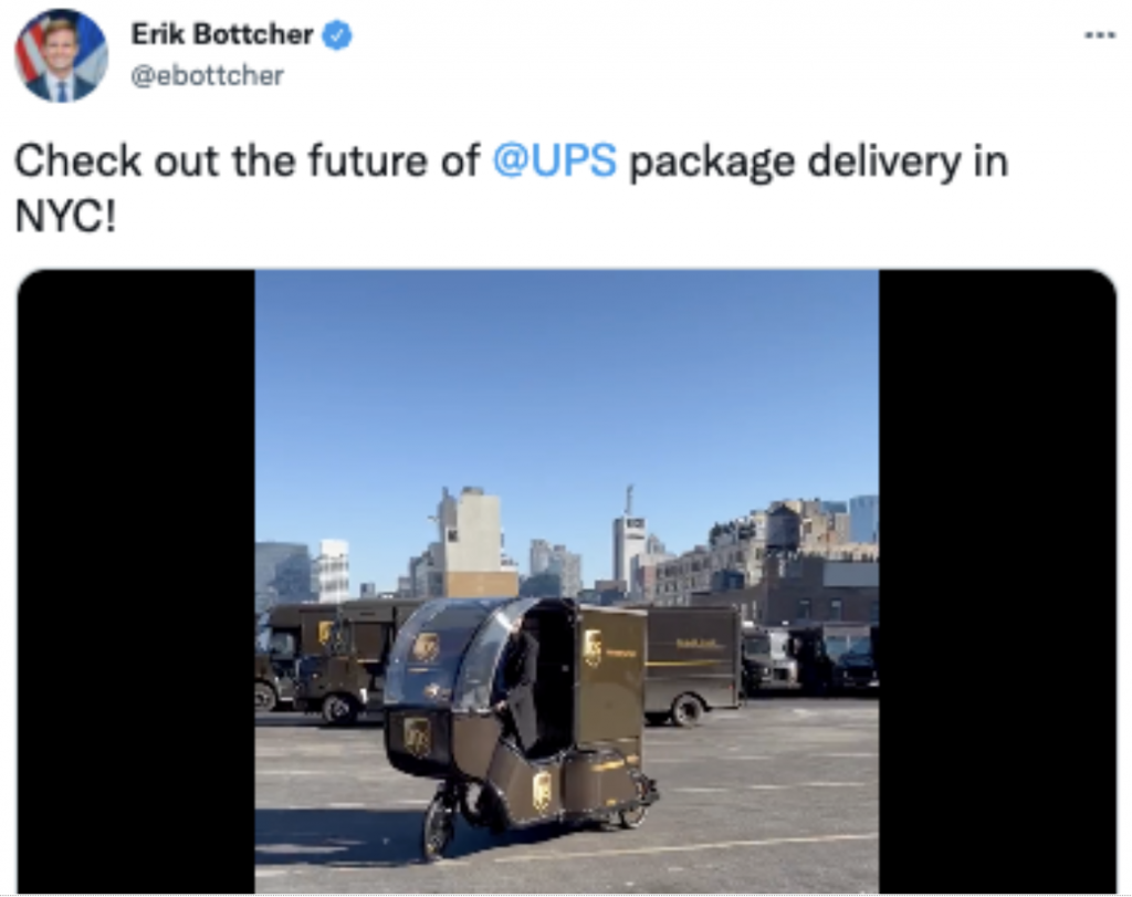 Last month, New York City Councilman Erik Bottcher sent a tweet with a video in which Erik “showed off” on an electric tricycle with the American UPS logo, and introduced: In New York, UPS will Replace many traditional gasoline-powered trucks with this electric delivery van. The text section reads “Let’s see the future of New York Express! @UPS”. It is reported that this electric tricycle consists of a trailer and a detachable cargo area, which can be driven into the building, and loaded and distributed using a freight elevator.